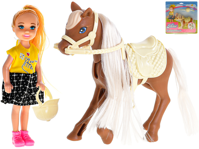 Panenka 13cm s koněm 14,5cm na kartě.