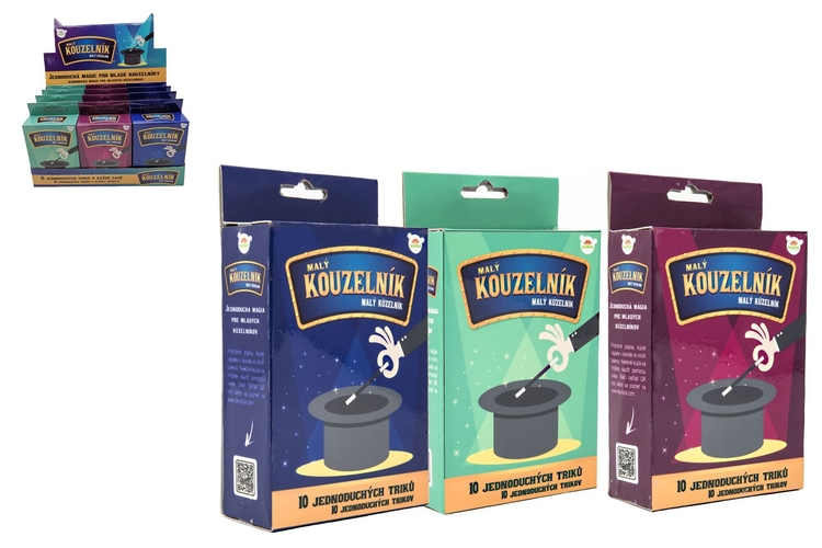 Jednoduchá magie pro mladé kouzelníky. 10 triků v každé sadě, balení obsahuje kouzelnické pomůcky, se kterými se naučíte různá kouzla. Některé triky vyžadují použití běžných domácích potřeb. Podrobné popisy kouzel najdete v návodu uvnitř. Některá kouzla se můžete naučit i pomocí videa, stačí načíst QR kód na krabičce. Rozměry balení 11 x 18 x 5 cm. Vhodné pro děti od 6 let.