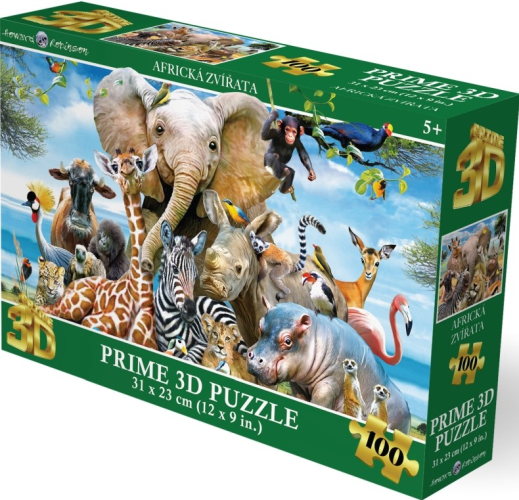 3D puzzle s motivem afrických zvířat. Balení obsahuje 100 dílků. Rozměry balení 23x15x5 cm. Rozměry složeného obrázku 31x23 cm. Věk 5+