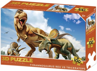 3D puzzle s motivem dinosaurů. Balení obsahuje 100 dílků. Rozměry balení 23x15x5 cm.